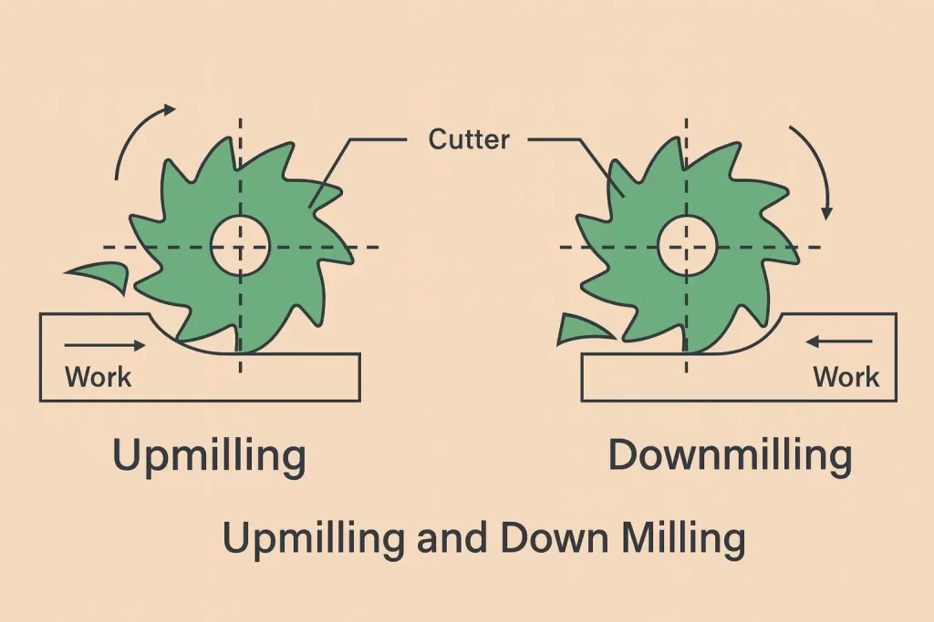 El fresado en oposición elimina los problemas de holgura. La fuerza de corte empuja contra el movimiento de la mesa, en lugar de acompañarlo. Este método es seguro para máquinas antiguas con husillos desgastados. Las fresadoras manuales prefieren esta técnica por esta misma razón.