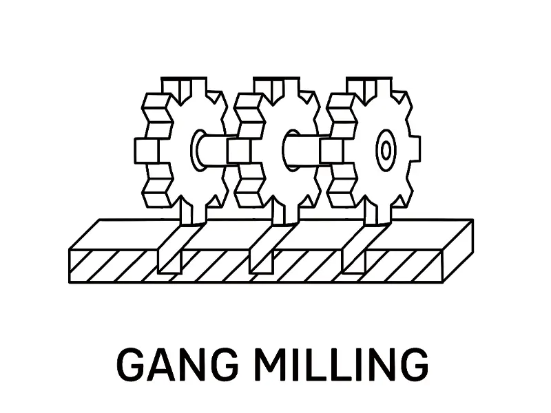 En el fresado múltiple, se montan varias fresas en un mismo eje para mecanizar varias ranuras en una sola pasada. Este método se utiliza cuando es necesario producir varias características idénticas en una pieza de trabajo. El fresado múltiple es muy eficaz para la fabricación en masa.