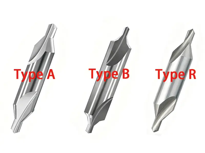 Type A is the most basic type of center drill with a 60° conical angle. It follows the DIN 333-A standard. This type of center drill is used for creating center holes or spotting holes in shafts.